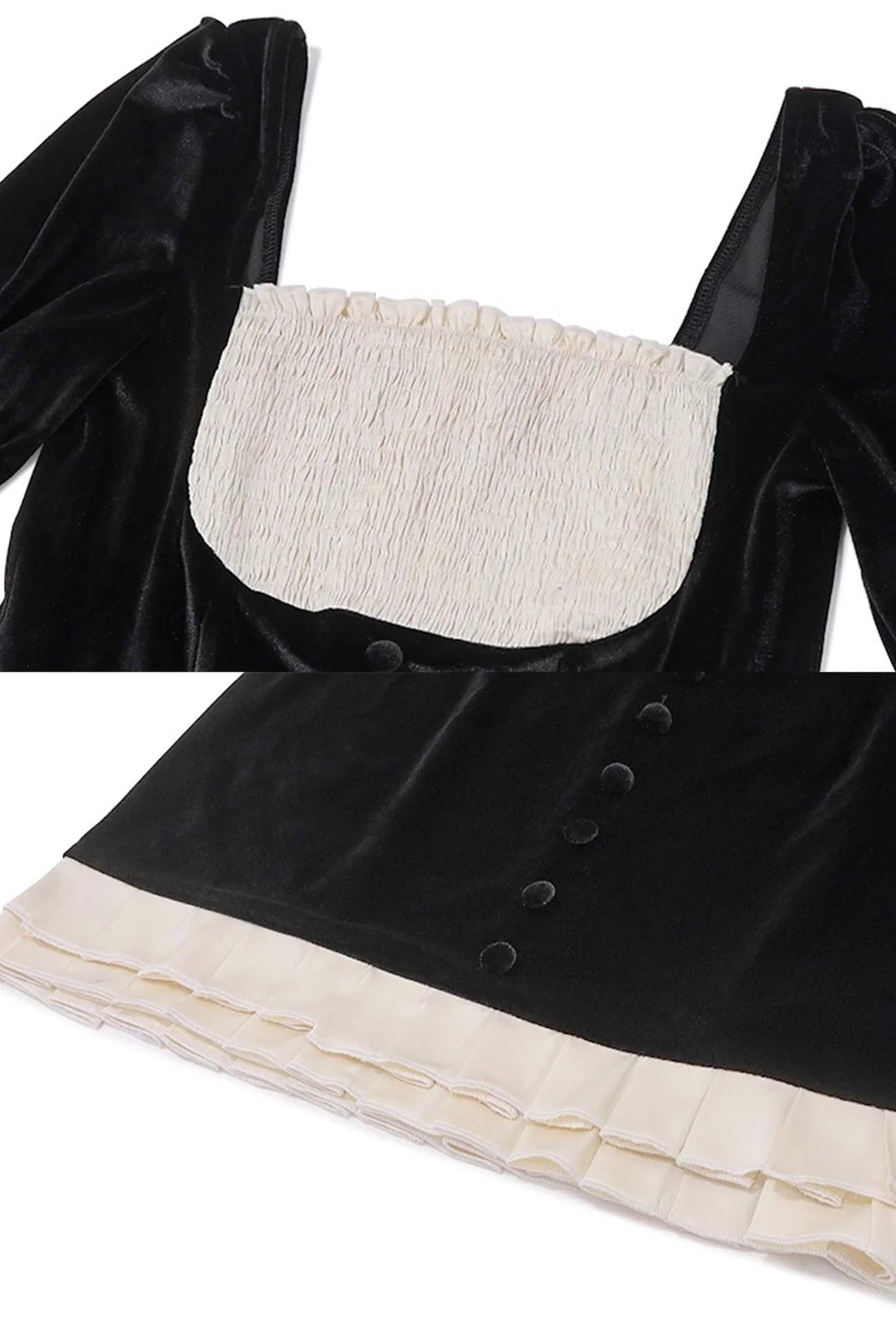 - Pleated hem.