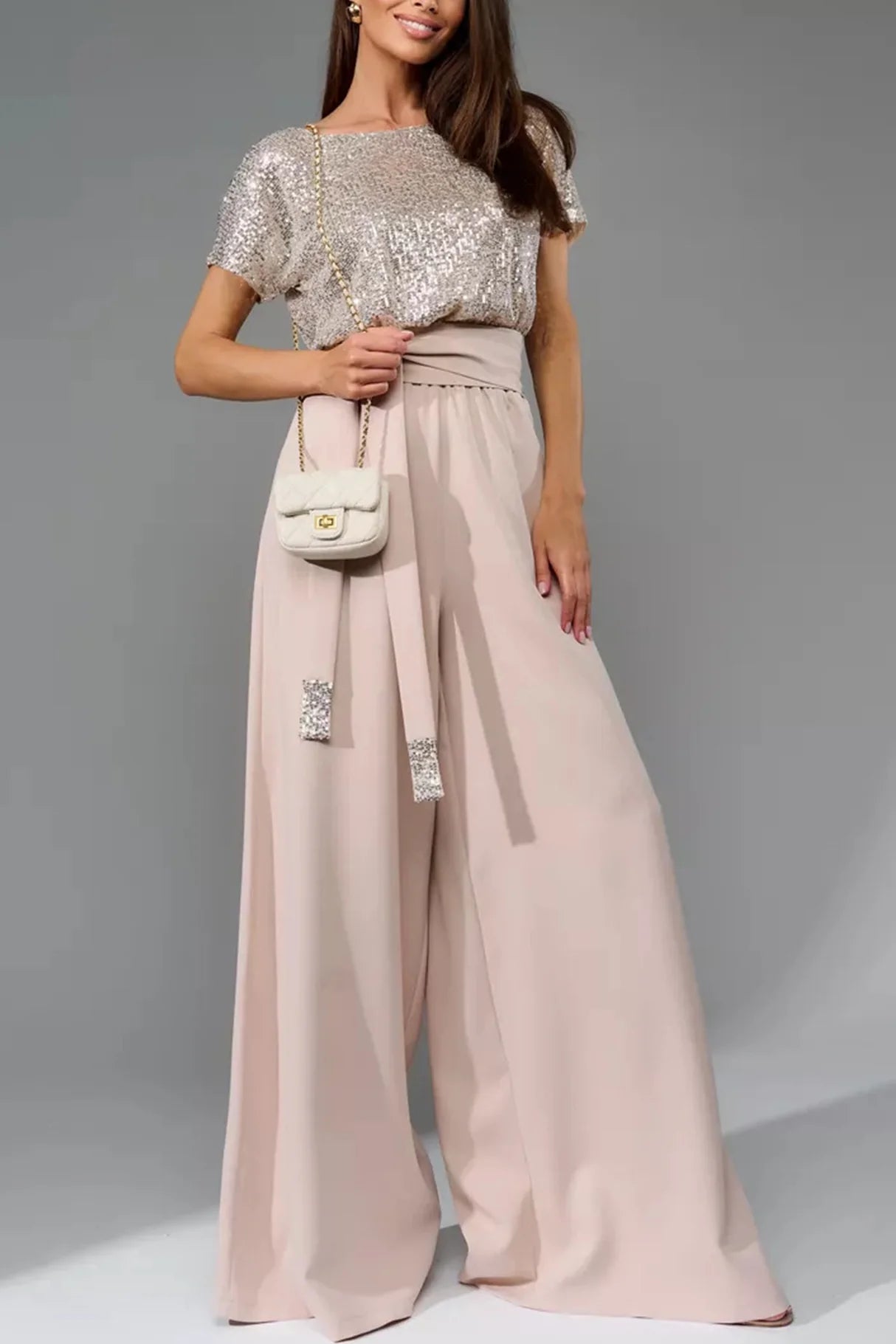 Sequin Patchwork Short Sleeve High Waist Jumpsuits