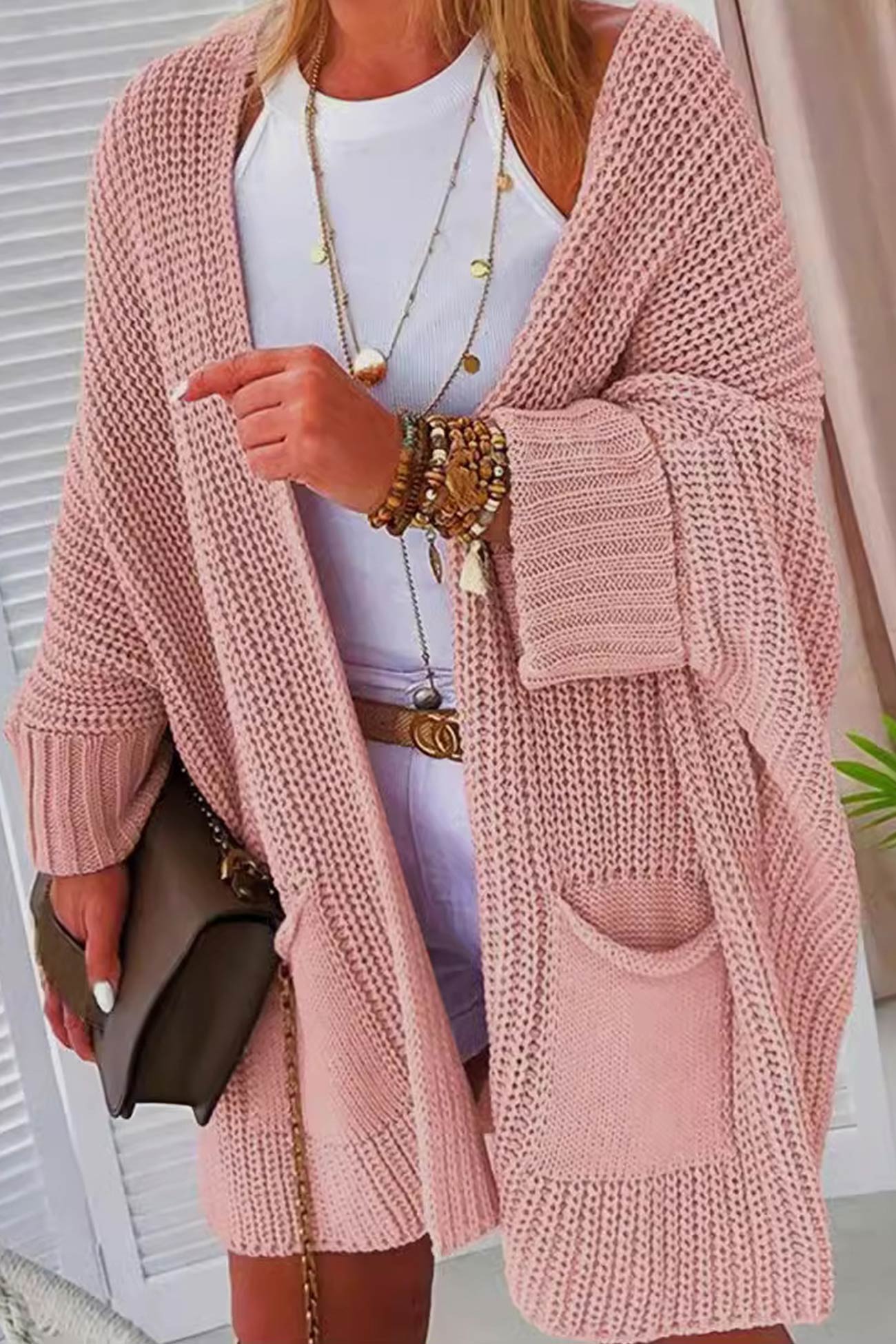 Solid Color Bat Sleeve Open Front Cardigan
