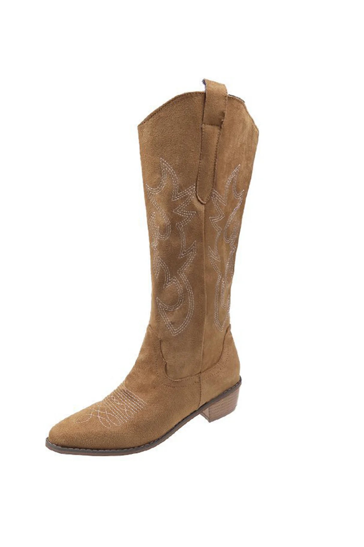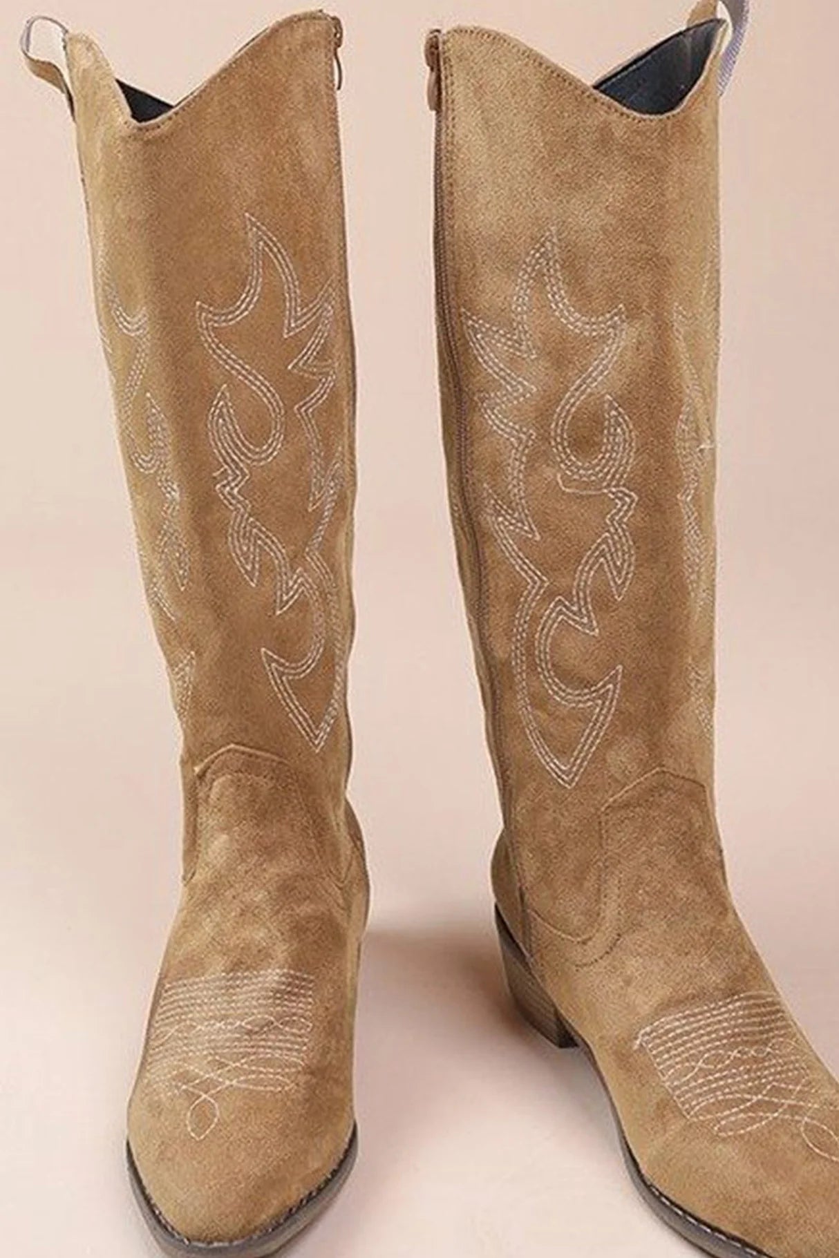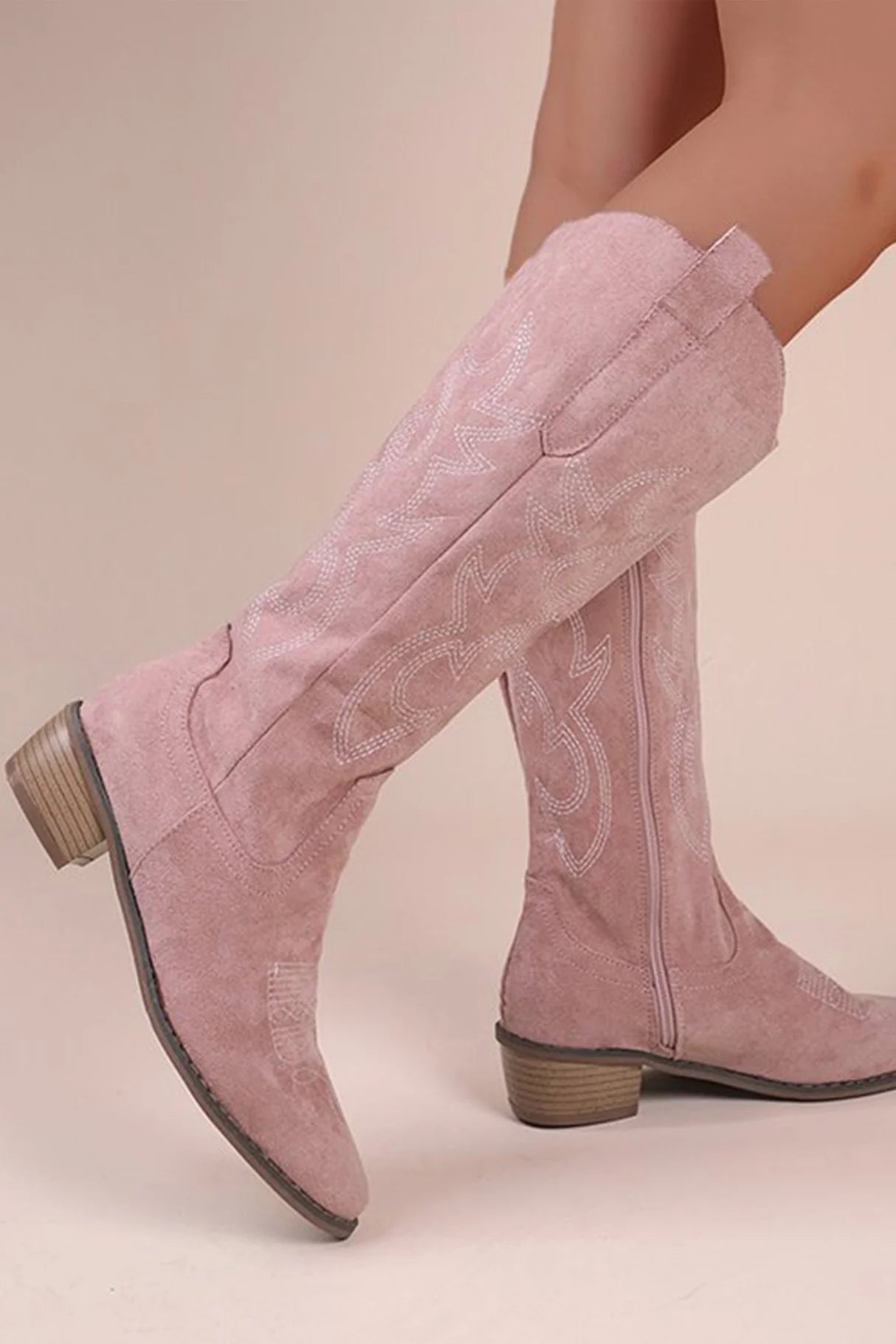 Suede Embroidered Thick Heel Cowgirl Western Boots