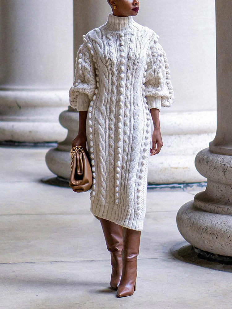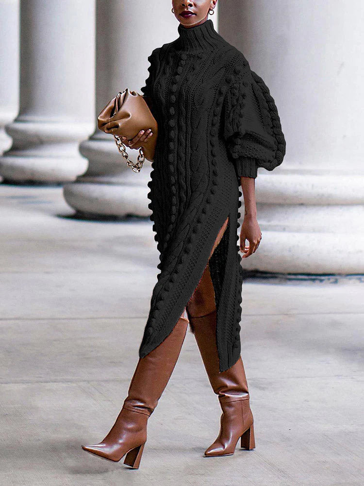 Turtleneck Slit Knit Dress