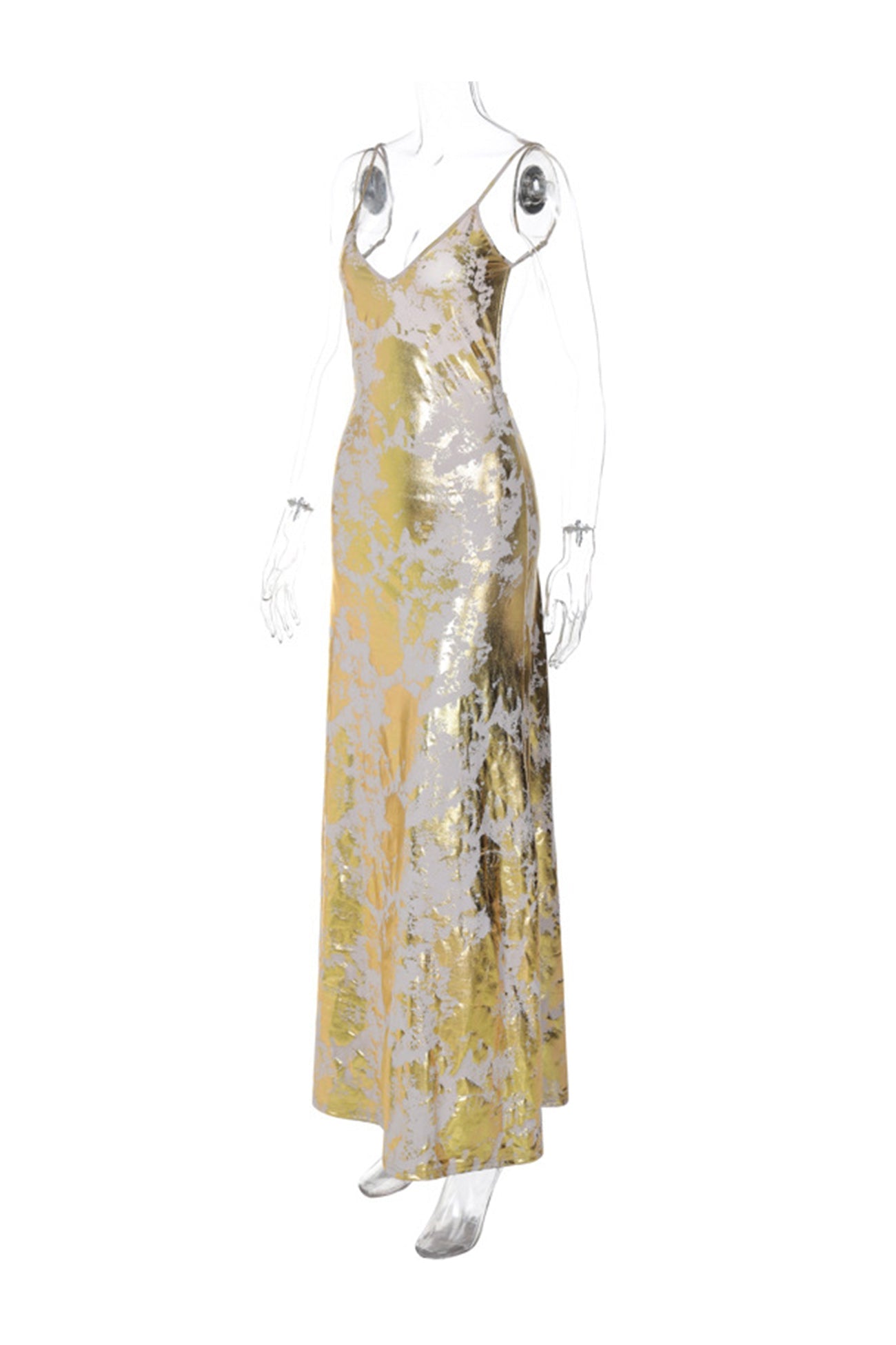 V Neck Backless Hot Stamping Cami Dress